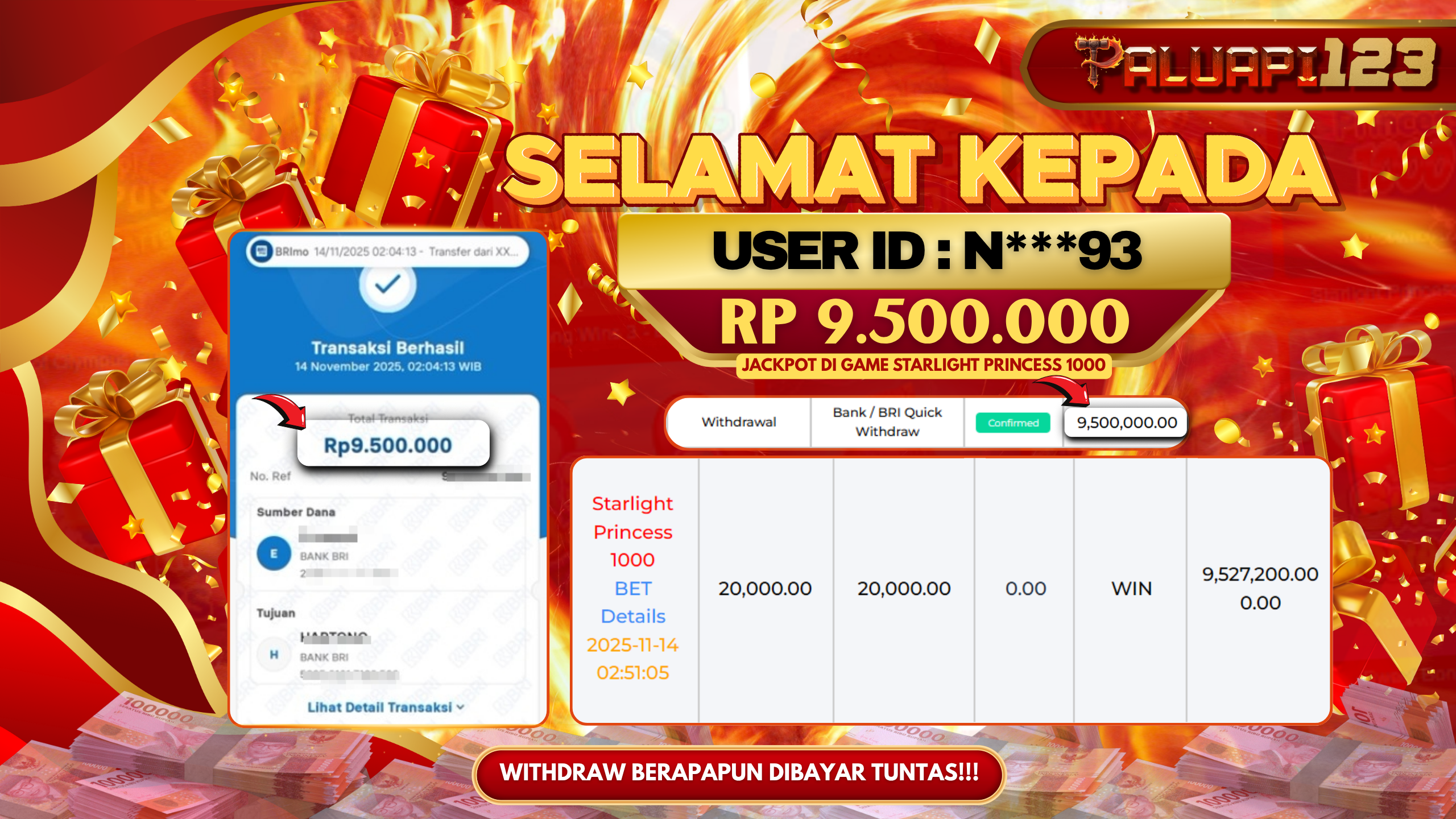 Selamat kepada User id : N***93 Telah berhasil mendapatkan kemenangan besar pada permainan STARLIGHT PRINCESS 1000 kemenangan Sebesar Rp.9.500.000.,-
