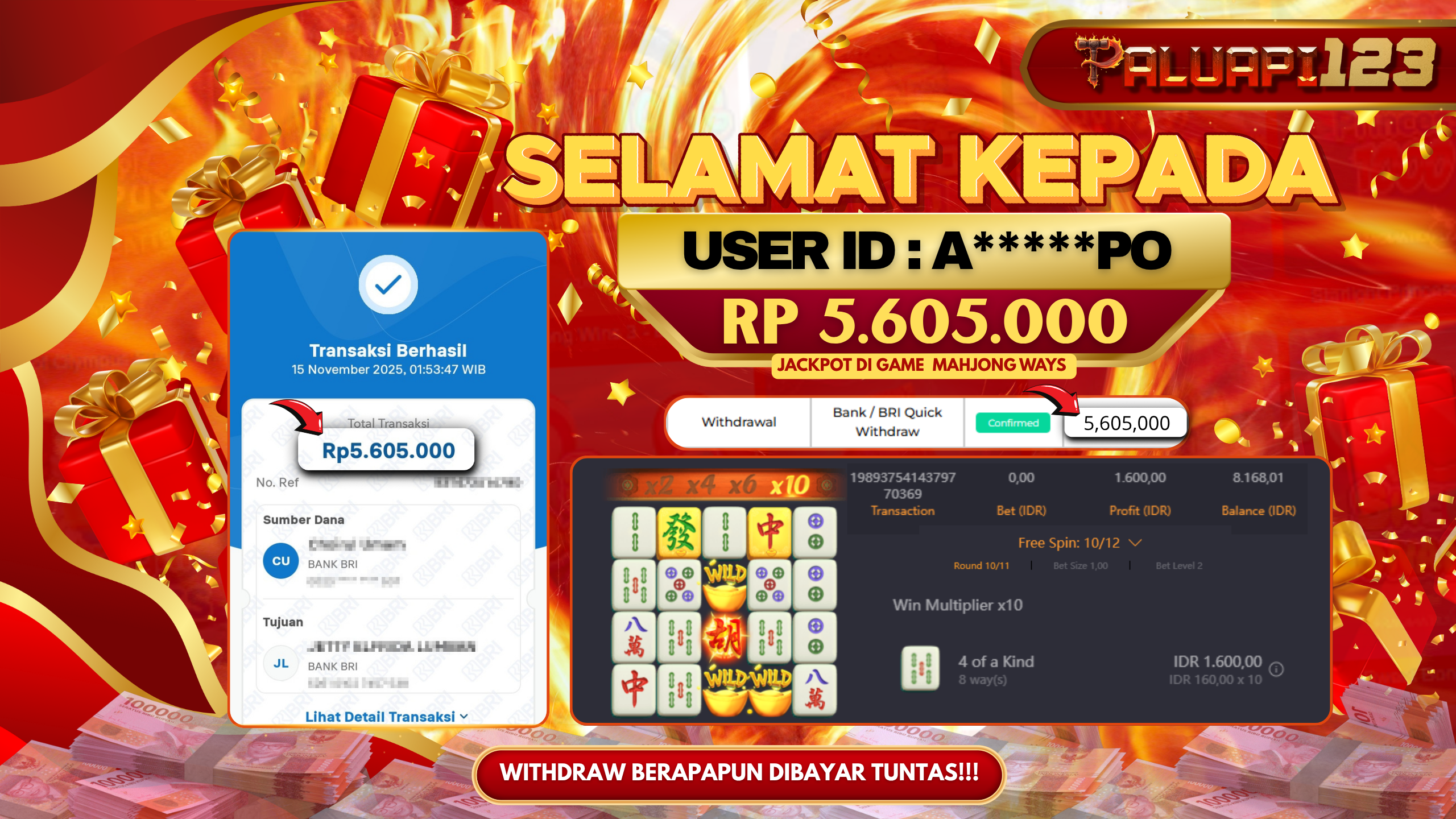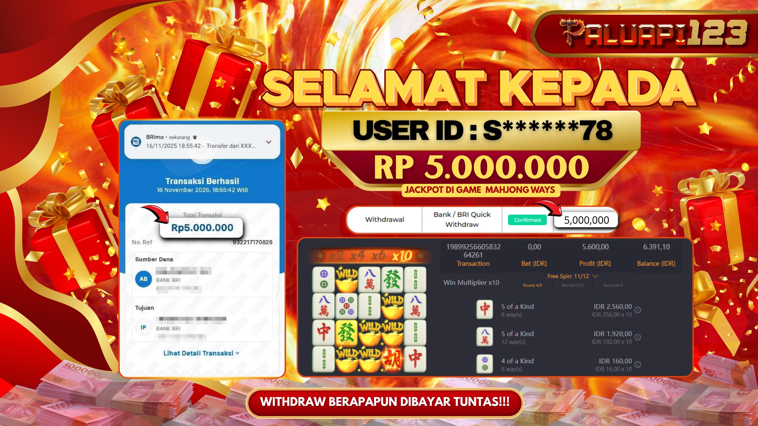 Read MorePALUAPI123 merupakan slot online yang membayar semua kemenangan member hingga lunas. Setiap pembayaran pada situs kami dilakukan dengan cara transfer ke rekening tujuan yang sudah di daftarkan pada situs online kami, Pembayaran hanya dapat di proses jika rekening yang di daftarkan telah valid dan dapat di transfer. Semua kemenangan member yang mendapatkan hadiah jackpot terbesar akan kami posting agar semua pemain dapat melihat bandar situs terpercaya PALUAPI123 ini membayar semua kemenangan member hingga lunas. Setiap postingan yang kami posting akan kami lakukan sensor pada nomor rekening 4 digit dan nama rekening untuk menjaga privasi dan kerahasiaan member. Postingan Jackpot yang kami posting agar member atau pemain yang belum pernah bermain bisa melihat slot online Bukan Kaleng Kaleng Seperti PALUAPI123} ini, Semua postingan jackpot yang kami posting dapat di lihat data keasliannya melalui nomor reff yang di tunjukan pada bank atau mbanking saat kita melakukan transfer.